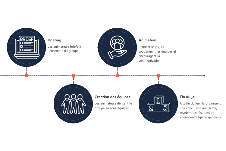 Les animateurs peuvent gérer cette animation à distance ou en personne, en fonction de vos objectifs et des ressources dont vous disposez pour la logistique le jour de l’événement :